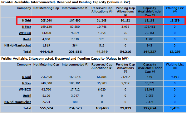 On March 31, the Department of Public Utilities (DPU) approved a petition filed by National Grid (Company) in mid-February to adjust capacity under the Company's caps. This request was filed after an internal review revealed that solar projects had been included under the wrong cap. As a result, the Company requested that the DPU direct The Cadmus Group, in its capacity as the administrator of the net metering System of Assurance, to add about 15 MW of interconnected solar projects to its public cap and remove about 16 MW of interconnected solar projects from the private cap. You can view the Company's petition here.